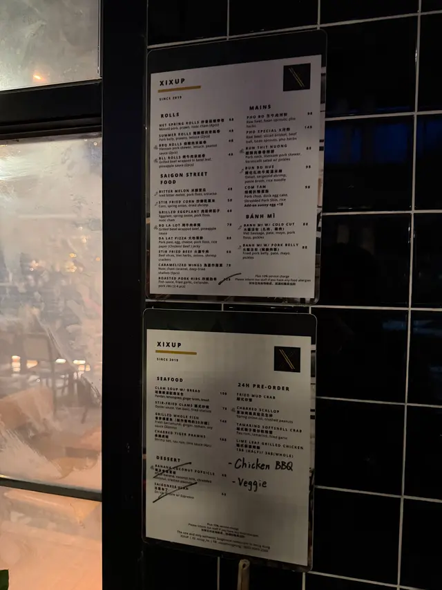 大圍積存街好多好嘢食, 大家都知.但行多幾條街, 冇諗過會搵到間咁有驚喜嘅越南餐廳.一入門口就俾佢嘅裝修吸引住.個feel有啲似酒吧.牆上面有一幅好大嘅越南少女壁畫.餐廳氣氛好舒服.講下食物先.大叻Pizza (HK$88)餅底好薄好脆.剪開嘅時候會有「咔嚓咔嚓」聲.餡料有得揀牛肉或者雞肉, 我揀咗雞肉.Pizza上面仲有蝦米、肉鬆、蔥同埋蛋.食落有啲鹹香味同少少甜.個醬酸酸甜甜, 少少辣.我覺得唔點醬都好食.豬頸肉春卷撈檬 (HK$88)份量都幾多.除咗燒豬頸肉、炸蝦春卷同檬粉, 仲有炭燒豬肉串、勁多生菜同青瓜.個汁酸酸甜甜好開胃.春卷偏鹹, 但咬落好脆.裡面隻蝦好大隻, 仲有啲肉碎.豬頸肉好香, 唔韌.燒豬肉米紙卷 (HK$48)真係有驚喜.米紙皮煙韌.餡料有燒豬肉、檬粉、蘿蔔絲、生菜, 層次豐富.燒豬肉口感結實.點花生醬食, 勁好味!整體嚟講, 呢間餐廳個vibe幾好.坐得好舒服.食物賣相靚, 味道有層次.特別推介米紙卷.我食完仲回味緊.我下一定要試埋其他嘢食!…查看更多