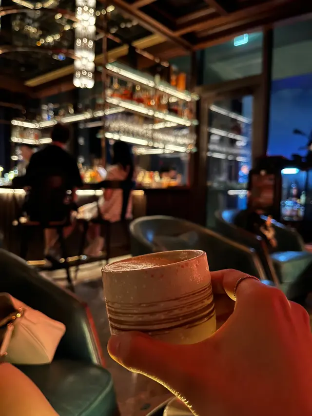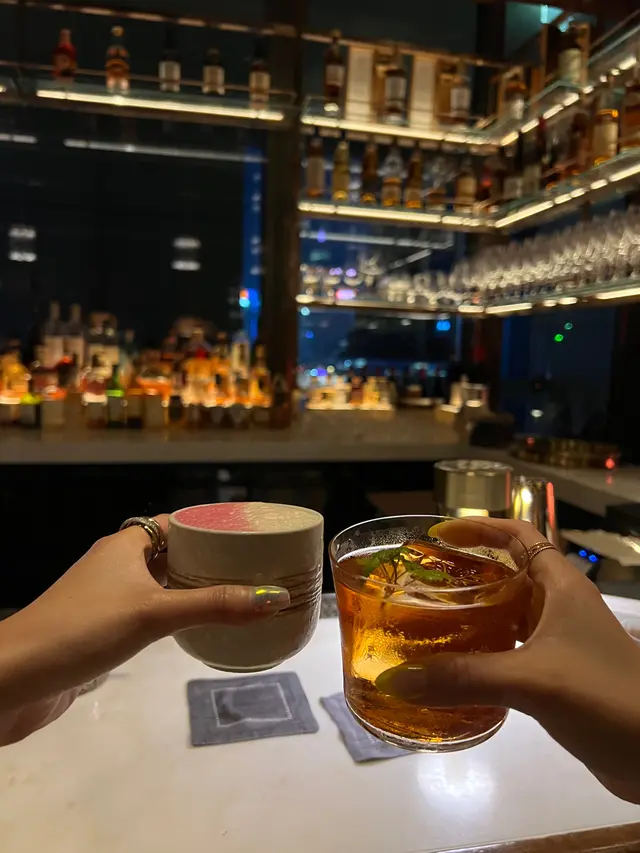今晚係Bayfare social食完晚飯,就過咗嚟飲兩杯,去到門口已經有人排緊隊,侍應話暫時得返戶外坐,我哋唔介意所以一開頭坐咗出戶外先。天氣好望住個海景都幾靚。之後入邊吧枱有位就邀請我哋入返去坐,坐户內好feel好多,可以聽現場歌手自彈自唱,而且可以望住調酒師調酒,亦都係唔錯嘅體驗。飲品方面,待應推介我哋嗌呢兩杯,一杯花香味重,啱女仔飲!另一杯就酒味較濃,適合男士。男士個杯Dragon Eye好吸睛!調出嚟嘅顏色好靚🩷🤍呢兩杯我哋都好鍾意。仲有呢度飲嘢會包埋nuts,今晚係橄欖同麻辣花生,叉仔仲係XX專屬款,好靚。…查看更多