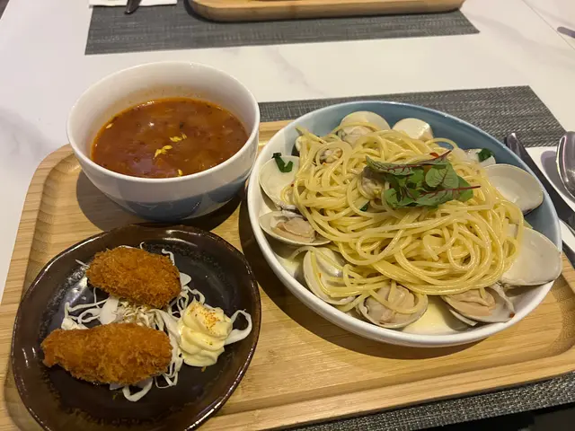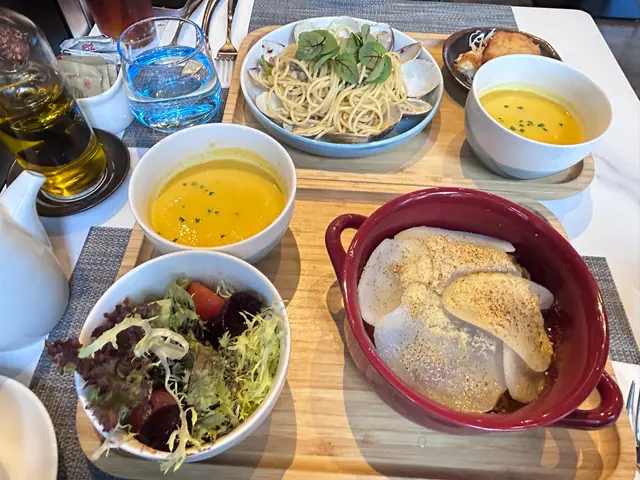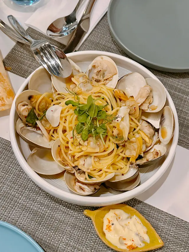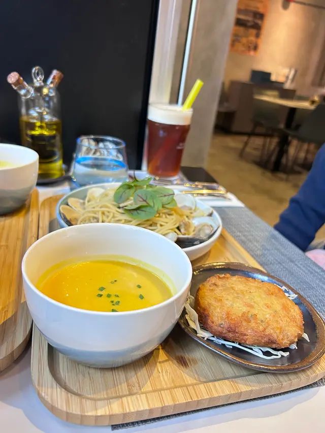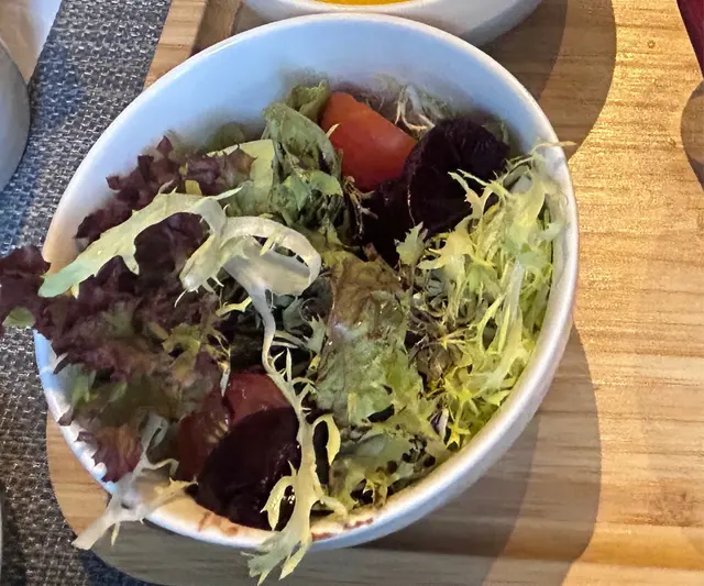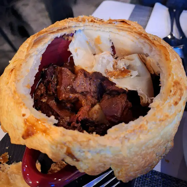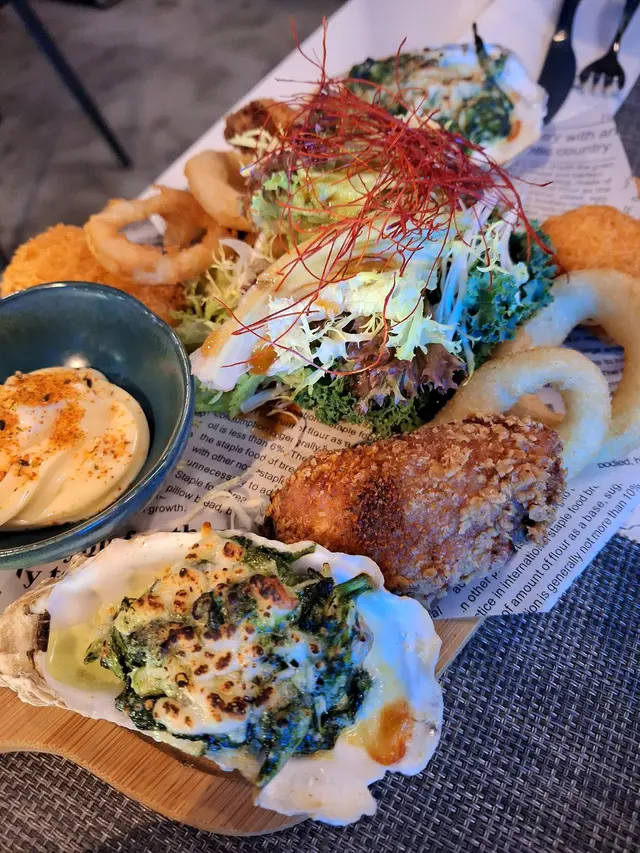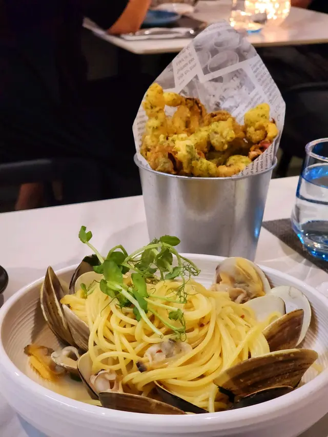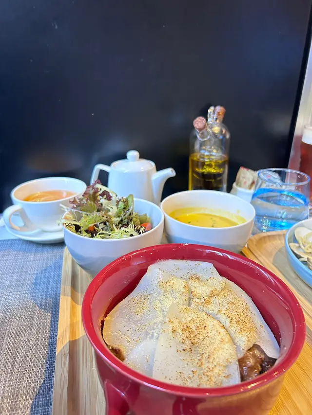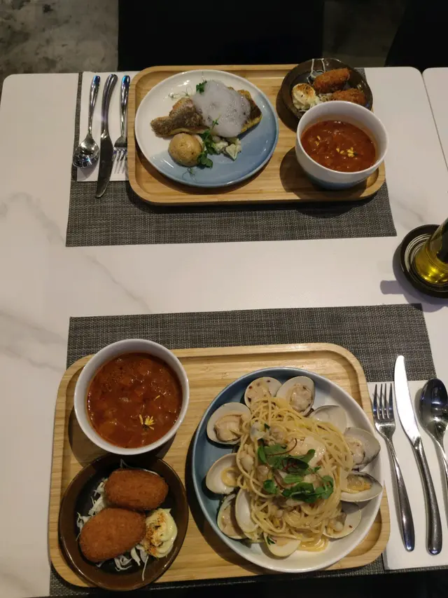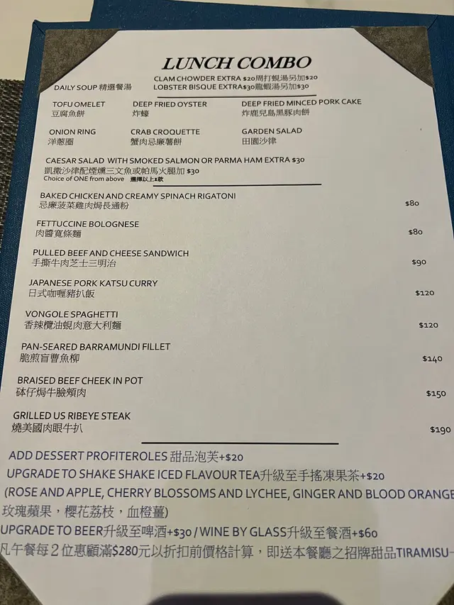 係google map見到評分高,上openrice 見訂座有9折,所以晚餐拍拖黎試吓。本身見到有負評有啲擔心,不過入座見到有枱 身光頸靚嘅,有啲年紀嘅貴婦同西裝佬(吾係打卡OL),黎慶祝生日,反而感覺應該有信心。waiter好禮貌,服務好好,入座有幫忙拉櫈,有即刻俾籃我地放手袋。拉櫈呢吓真係旺角啲餐廳冇咩見過,冇稔過旺角樓上舖都可以遇到有好服務嘅。入座同我地介紹menu,今晚二人套餐有88折,所以叫左呢個。小食拼盤分量都吾少,波菜芝士焗蠔好味。雞翼炸物係正常嘢,ok。餐湯蘑菇忌廉湯,係打成蓉嘅蘑菇湯,好味,好濃。主菜揀一飯一肉,我地叫左軟殼蟹龍蝦汁意大利飯,同缽仔燉牛肉。龍蝦汁飯好大份,飯量有兩碗飯,有撒啲櫻花蝦,食落飯冇咁單調,除左龍蝦汁味但不時咬到櫻花蝦有少少甜,我中意。軟殼蟹就係正常味道。缽仔燉牛肉,酥皮面好酥好脆,牛肉好多,比想像中多,有成10舊左右,我地都食吾晒啲肉。肉好淋好軟,一叉開就散開,完成吾怕韌,缽仔底仲有薯仔蘿蔔白椰菜花,好味。跟餐甜品,我地冇加錢叫tiramisu ,就試左泡芙同焦糖榛子蛋糕,吾係自家整嘅貨,不過味道ok,正正常常。有折再加番一,800蚊兩個人,我覺得ok,會再黎。係旺角食個咩打卡cafe,晚餐都成300蚊位啦。喱度有服務,食物有質素,掂