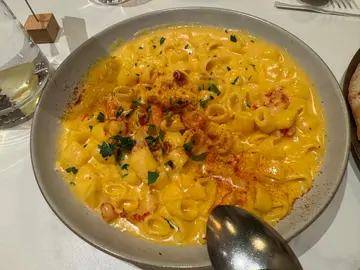 临近中秋,陪家人都沙田取月饼礼盒送礼,故顺便到沙田用餐~来到餐厅已是下午2时,午市的人潮渐散,店员安排我们坐4人桌,空间濶落,唯独坐位缺少自然光~午市套餐包括: 餐汤、主食及餐饮,也可加配小食& 甜品~意式香草鸡翼一客两只的鸡翼,外皮焗得香脆,鸡肉嫩滑,很juicy!酥皮忌廉龙虾汤酥皮焗得金黄香脆,龙虾汤热度十足,质感creamy,相当好喝~脆炸鱼柳意式软包配自家制他他酱意式软包内是炸得香脆嫩滑的鱼柳,配上新鲜爽脆的沙律菜,感觉清新滋味; 跟餐薯条炸得金黄香脆,令一向喜欢吃炸物的我,吃不停口呢~鳀鱼酱杂锦海鲜意粉面层舖满大量芝士碎的咸香鳀鱼酱配海鲜原来很夹的,加上有嚼劲的意粉,除了味道出色外,卖相亦很吸引😊柠檬玫瑰开心果巴斯克芝士蛋糕 (跟餐加配)面层洒上玫瑰花瓣及开心果碎,底下是软滑的芝士蛋糕,甜度适中又软滑,作为甜品刚刚好!杂莓乳酪沙冰紫色的杂莓乳酪沙冰,卖相相当悦目; 入口酸酸甜甜又透心凉,餐后一杯更有解腻作用!芒果乳酪沙冰喜欢味道偏甜的朋友,选这杯芒果乳酪沙冰就最适合不过了! 同样是相当透心凉,不过这款有淡淡的芒果清香,也很不错~…查看更多