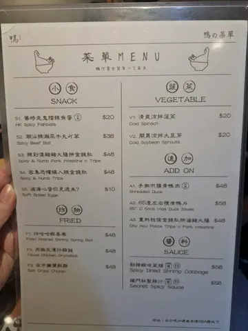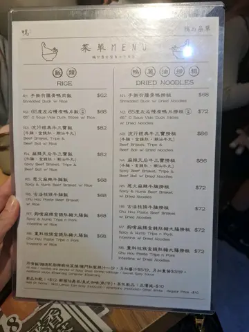 Saw recommendation from Instagram and went here with my friend..Both of us ordered 65° C Sous Vide Duck Slices with Rice, which consisted of pak choi and a half soft boiled egg. The duck slices were sliced in a balanced state and tender. However, it was quite heavy and greasy, so I got quite full after having it. We also ordered Spicy & Numb Tripe to share. While the tripe was soft in texture, its taste didn't leave a lasting impression. .The Chinese names of the dishes were quite amusing and funny. With a duck theme, the resto was decorated with various duck drawings and dolls, making it look cute and comfy. …查看更多