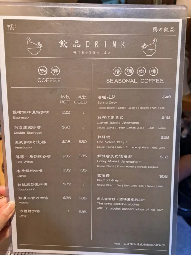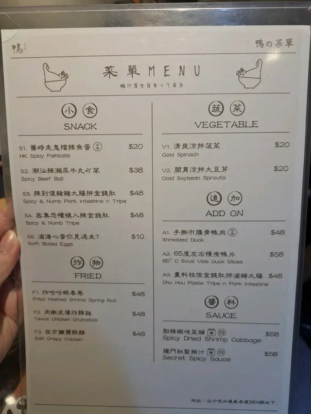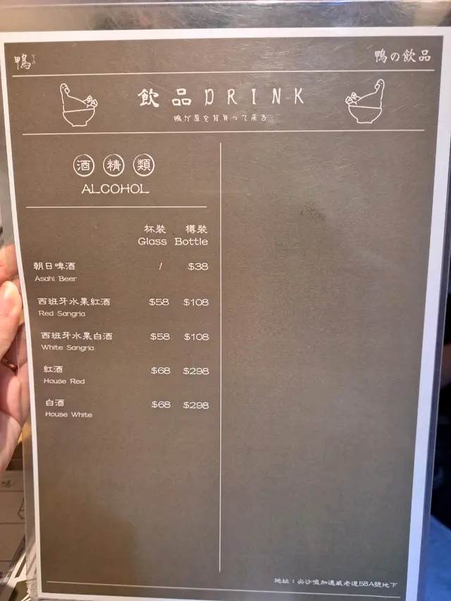 YA鴨 (尖沙咀) 网址: https://s.openrice.com/QrLS0zBQ600 地址: 香港尖沙咀加連威老道58A號地舖 电话: +852 31022238
