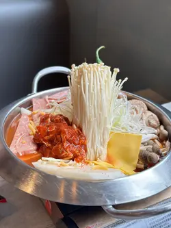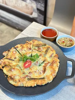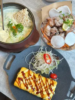 之前同朋友嚟食过晚餐,今日lunch time比较充裕啲时间,所以同同事拣咗呢间,今次可以慢慢叹!!环境一流,而且空间感十足,两个人都俾你坐四个人嘅卡位,坐得好舒服!最重要系冷气好足,又播住K-pop,有种错觉去咗韩国咁🤣玫瑰牛肉砂锅汤面 $128呢个系一个午餐set,所以仲有汤,四个前菜,饮品🤭性价比高呙😘个样睇上去好creamy,系有奶白汤咁,但食落一啲都唔heavy!面质好正,系粗粗地又有咬口!!不过建议如果钟意食,晏啲就要早啲食,因为石头锅令到佢会继续有煮紧嘅效果😂牛肉都好高质,肉纹好清晰!唔会太肥👍🏻八爪鱼煎饼 $138超好食!煎到外脆内软,同埋有啲葱喺度令香气味道增加💕八爪鱼系粒粒,唔会太难咬!佢仲配咗两个酱,红色嘅系甜酸辣都有嘅味道,好得意!黄金蒜香炸鸡 $198去韩国餐厅点会唔食炸鸡😆呢个系佢嘅招牌菜!蒜香味十足,唔会太过肥腻!仲有柠檬减肥腻感😌侧边仲有啲虾片同番薯条,都几饱下芝士蟹子蛋卷 $135蛋卷上面有茄汁同芥末汁🤭入面包住劲多芝士同蟹籽🥶好鬼正!!!一啲都无手软,落超多呀!!!!…查看更多