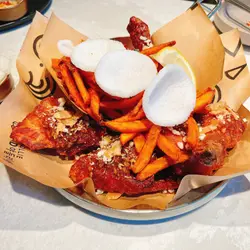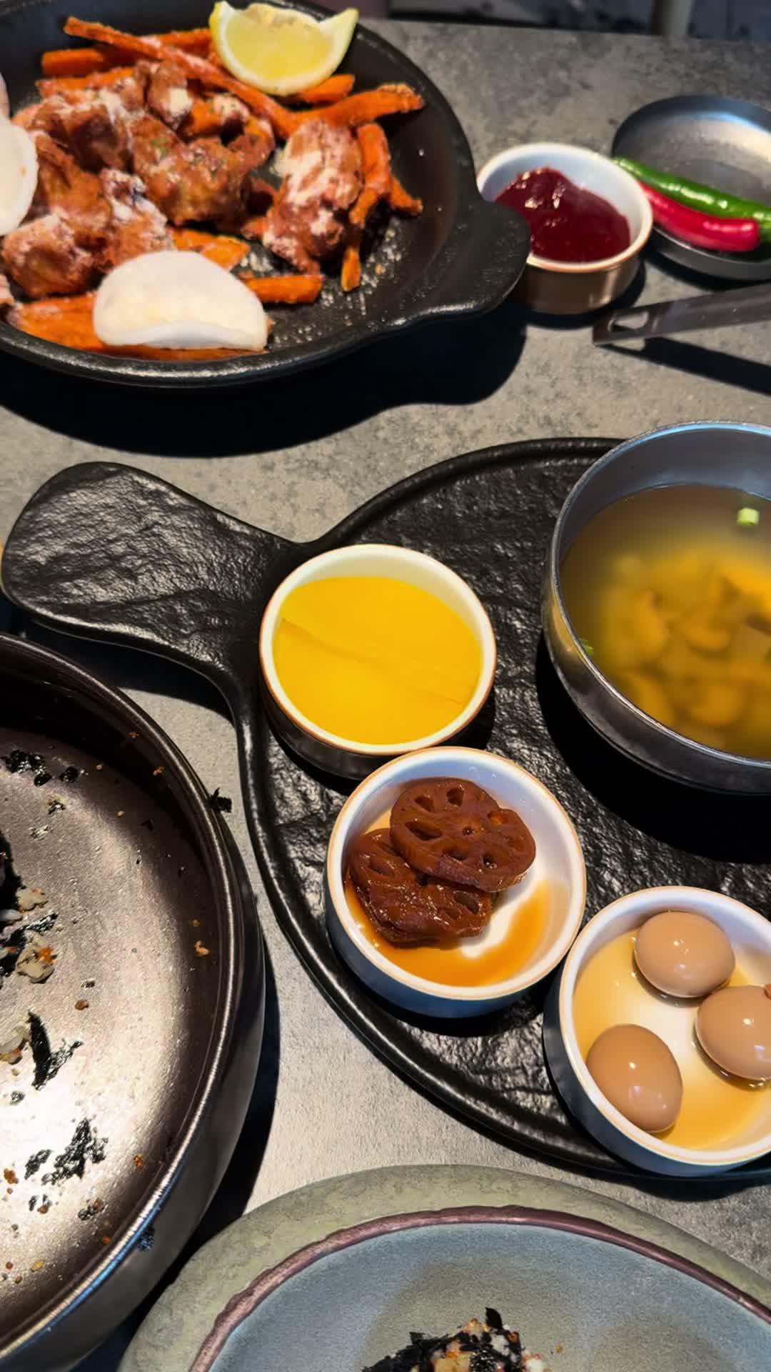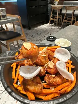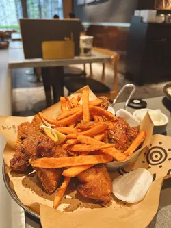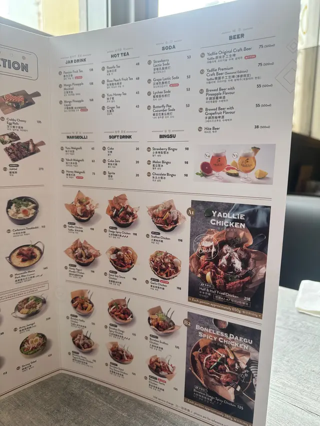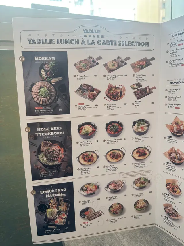 同朋友兴起想食炸鸡,即刻谂起Yadllie Plate,早排系旺角食过,今次系另一间舖再食,上次食晚餐,今次可以试下「午市套餐」&「午市精选」价钱平d d韩式小碟可以任添(汤不能加添),韩式小碟都唔马虎,几好味~半半炸鸡 $218 半半炸鸡可以拣2款口味,全部炸鸡即叫即炸好香口,炸粉刚好唔太厚。朋友仔唔食辣拣原味炸鸡,我钟意食辣拣大邱辣酱炸鸡,原味大人小朋友都啱食,大邱辣酱炸鸡都真系辣辣地,辣得好惹味,不过食唔到辣嘅朋友仔要拣另一款口味la~黄金蒜香无骨鸡 $135依到有得拣无骨鸡,适合懒得吐骨钟意啖啖肉嘅朋友仔,一口一啖鸡肉,入口香浓蒜香酱味,加上大量炸番薯条,劲邪恶系咁食!芝士蟹子蛋卷 $135卖相超靓!蛋卷入面全部都系蟹子,一夹开系爆满泻!入口全部都系蟹子!之后系芝士同蛋味~蛋卷超好味!劲推介!夏威夷阿努哈 $228拼盘有:炸鸡、椰丝虾、洋葱圈、粟米,炸鸡系原味,任何人都啱食,椰丝虾超惊喜!用大虾炸大大只即刻觉得好抵食!2款酱汁都好滋味,食到唔同口味,朋友聚餐必嗌!香辣海鲜太阳盖饭 $88卖相超吸引!捞匀只太阳蛋同海鲜食少少辣好开胃,份量都多,午市食性价比高另外因为系午市套餐+$18有特饮巨峰乳酸梳打,正价要$53,抵饮好多!酸酸甜甜,加上爆爆珠增加口感,真系有2粒巨峰提子食得㗎!直火现炙猪腩肉 $125职员系位现场即烧,入口食到阵阵焦香肉味,可以自制食法,包菜点酱点食都得,猪腩肉脂肪同肉比例刚好,食到油脂与肉混合层次!同样午市套餐+$18有特饮玫瑰蜜桃果茶,超香玫瑰花香,加上香甜蜜桃味,成件事好sweet!Yadllie Plate 야들리애플래이트 📍地址:荃湾大河道100号海之恋商场2楼2030-2032号舖…查看更多