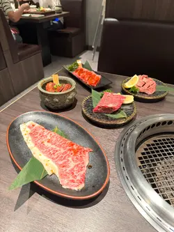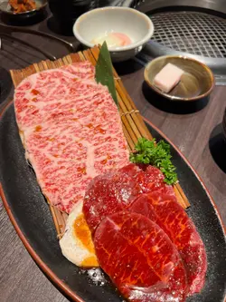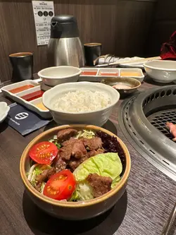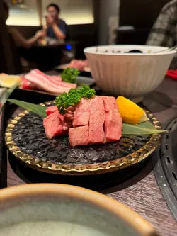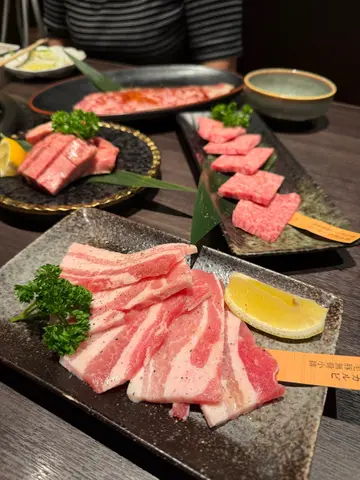前两日去咗沙田新城市广场顶层食烧肉,见到一啲套餐几抵食,于是同朋友一齐试咗烧肉套餐。当晚我哋叫咗 **黑毛和牛大判烧盛盒**,入面有 **鹿儿岛A4和牛西冷** 同 **美国牛板腱**。😋**鹿儿岛A4和牛西冷**:肥瘦比例真系啱啱好,入口即溶,仲带有浓郁嘅牛肉香味。💯 必须要将牛肉配埋蛋黄一齐食,仲可以捞饭,真系一流!🍚**美国牛板腱**:总共有四大块,肉味非常香浓,脂肪相对较少,适合钟意食瘦啲牛肉嘅朋友。🍖另外,仲试咗 **黑毛和牛拼鸡腿**,入面有 **腹柳小排** 同鸡腿肉。 - **腹柳小排**:雪花分布靓到不得了,入口软熟,带有浓郁嘅和牛味,CP值极高,值得推介!👌 - **鸡腿肉**:肉质鲜嫩,食得出系新鲜货!🍗成个套餐仲包埋 **白饭、沙律、前菜同甜品**,沙律同前菜都新鲜又清爽,甜品更加系亮点!有 **雪糕大福** 同 **杏仁豆腐**,质素非常高,食得好满足。🍨🍮整体嚟讲,呢餐烧肉抵食,食材质素高,份量亦足够,绝对值得一试!👍…查看更多