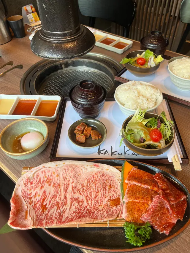 位于黄埔的「YAKINIKU KAKURA」主打日本直送极上黑毛和牛西冷,更提供多种套餐选择,价钱大众化。看著生肉在你面前慢慢煮熟,立即可以放入口中,冲击你的味蕾,真的非常自愈。《黑毛和牛二人套餐》$896套餐非常丰富,先来沙律菜和三碟前菜。接著是皇牌大判烧!黑毛和牛西冷。服务员先用猪油开镬,问客人想要的熟度,跟著把大大块的和牛片放入炉中,熟手地把肉片翻转,三两下手势就已完成,放入温泉蛋的碗中,沾著蛋汁一起食,热辣辣的和牛片软滑Juicy,和蛋汁绝对是完美的配合。之后,可以慢慢烧六款不同的肉类,有鳗鱼、牛舌、黑毛豚胫肉、若鸡鸡胫柳、 黑毛和牛精选和 封门柳。 服务员附上鳗鱼豉油,贴心地教我们待鳗鱼八成熟时涂上酱料再烧。每款肉烧出来都很美味香口。《白桃乳酸梳打》$48《梅酒加梳打》$58虽然同时有多张枱在烧烤,但整顿晚餐丝毫没有油烟味,抽风系统非常完善。最后有雪米糍和杏仁豆腐做甜品,为这顿晚餐或上完美的句号。…查看更多