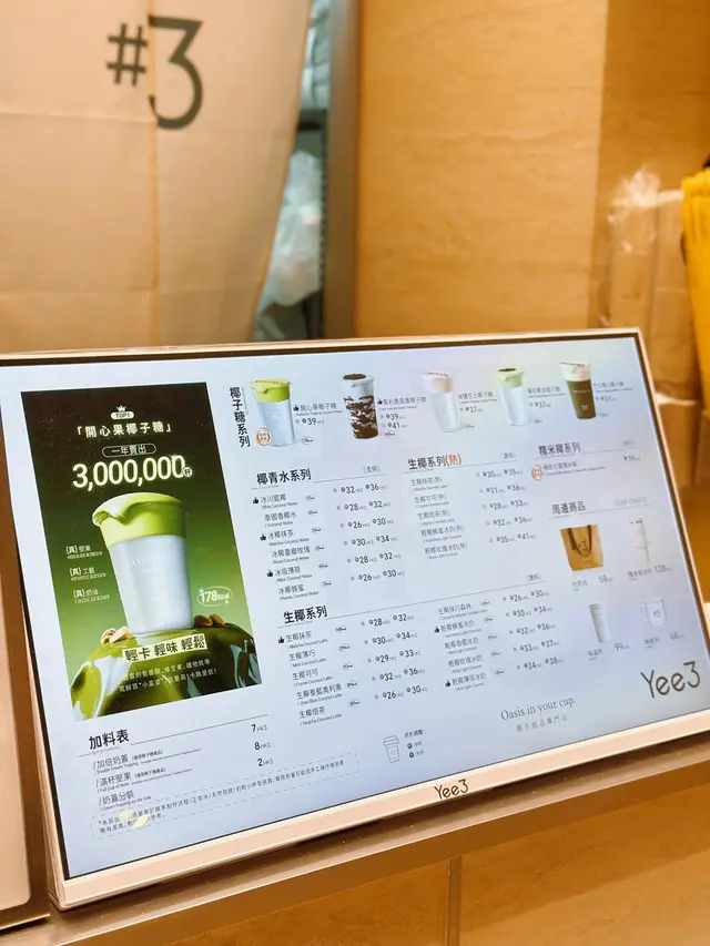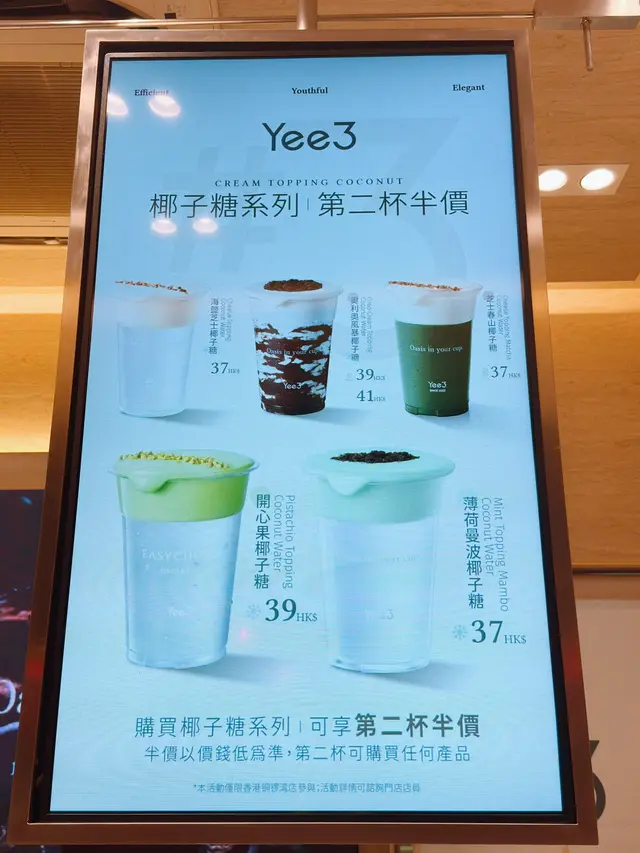有冇諗過一杯椰子水都可以滿足你嘅身心靈?特意為白領一族打造嘅輕鬆零負擔時尚椰子飲品品牌「Yee3」旋風式登陸銅鑼灣!Youth! Efficient! Elegant! 正正就係品牌嘅三大核心價值 品牌打造咗四大系列 包括:椰子糖、椰子水、生椰系及輕椰系款款都充滿着椰子魅力 深受消費者歡迎佢嘅招牌「開心果椰子糖」令人一試難忘😍92%堅果含量的開心果 融入奶油當中 細膩口感加上開心果脆脆 再配搭上充滿電解質的椰子水既冇咖啡因又冇茶多酚飲嘅時候完全零顧慮 清涼舒暢!其餘嘅飲品款式都好特別例如有Oreo、楊枝甘露同薄荷 款款口味嘅椰子配搭 包有驚喜👍🏻😀經過銅鑼灣嘅朋友一定要一試查看更多