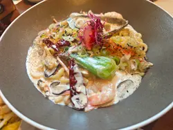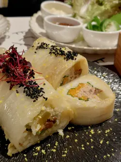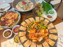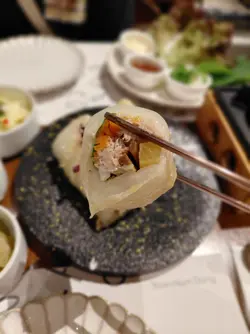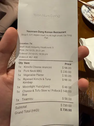西营盘向来多小店美食,今次黎左呢间韩国菜餐厅装修都几新颖,当然要入嚟试吓!先黎前菜Kimchi cheese Arancini外酥内软,用面包糠包裹着内里充满拉丝感的芝士🧀而且仲有米饭🍚及泡菜作为开胃菜一流Ripened kimchi & tuna kimbap用泡菜包裹著米饭🍚吞拿鱼🐟等食材一口吃下去绝对食唔晒, 充满多种新鲜食材, 口感非常丰富~Pork Neck BBQ + Vegetable platter猪颈肉烟韧爽脆,将紫苏叶包裹著猪颈肉、泡菜、韭菜一起吃再放上蒜头粒、青椒及海鲜酱一起吃味道辣得黎,仲可以刺激味蕾绝对系韩国菜必点菜式之一~Cheese & Soft Tofu Stew with Pollock Roe将软豆腐、明太子、芝士放在辣辣的汤窝一起吃层次感很丰富~想不到是出奇的开胃口喝,而且喝下去也不会太辣,愈喝愈过瘾~Tiramisu好大砖~食落去绵绵顺滑,而且也不会有太苦涩的咖啡味~甜度也刚刚好,适合一些吃不到太甜的朋友~Moonlight Yuzu柚子味的米酒香,配上爽脆新鲜的五花腩肉绝对一流~…查看更多