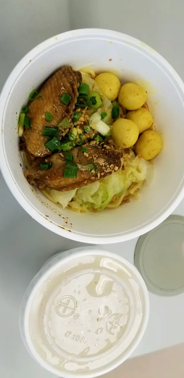 yummy午餐好抵食, 我最鍾意叫佢嘅車仔麵。 最平六蚊一個餸,最起碼要叫36蚊。佢聲稱佢唔落味精。星期五返工冇時間食飯,買咗個雞翼咖哩魚蛋 清湯油麵,盛圍36蚊。佢嘅豉油雞翼肉質唔霉同味道okay。咖哩魚蛋有啲細粒,唔係太彈牙。查看更多