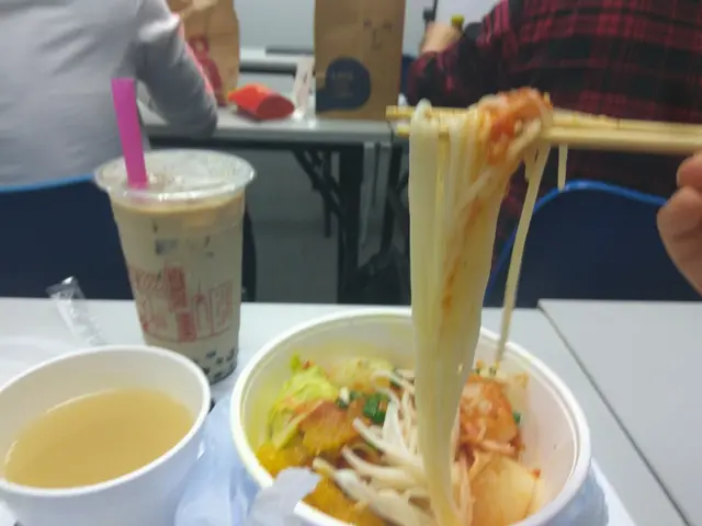 點了番茄蘿蔔芽菜豬皮米線。(食神mode)啲蘿蔔無渣,豬皮一夾不碎,但吃起來很像發泡膠,米線軟滑可口,但因為是外賣,所以送上教室時已經變軟了,神奇的是它沒有很難吃,依然有點彈牙的口感,米線也沒有一夾就碎。奉送多一碗味道很像泡麵水一般的湯,讓你調節米線的味道。整體而言非常滿足了,如果您想堂食也可以,午飯時間不需要等很久,但店鋪不是十分大,所以一群人一張桌子會有點擠迫。不過我不知道可不可以添辣。和同學在學校吃午餐,在中環的麵檔裡,選了這一間。查看更多