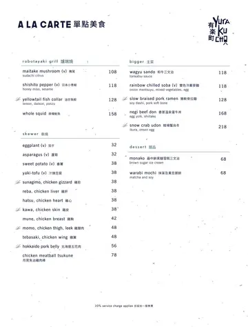 Yurakucho位于中环云咸街,是间日式居酒屋,店内装潢以黑色及木系为主调,展现出时尚而型格的氛围🖤 设计融入了不少日式元素,让人有种置身于日本的感觉🇯🇵 昏暗的灯光更增添了格调,非常舒适呢~😌平日午餐时间来到,看到有不少附近上班族也会来这里用餐☺️ Lunch Set包括主菜、渍物、沙律、甜品及饮品,价钱由HKD88起,非常划算👍🏻🤍炉端烧鸡扒 (HKD118)鸡扒外皮焦香,并带有淡淡的烟熏香气,内里嫩滑多汁🤤 而酱汁咸甜平衡,调味刚好✨🤍牛肉乌冬 (HKD138)牛肉肉质嫩滑,味道微甜,而乌冬口感弹牙有嚼劲,汤底亦不错呢~😋甜品是Tiramisu,咖啡味突出,口感层次丰富😍 而饮品方面,我们点了Prosecco及白酒各一杯(+HKD70@)🥂 在这样的环境气氛底下喝酒,真是一种享受😌📍Yurakucho - 中环云咸街43-55号余悦礼行地舖…查看更多