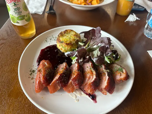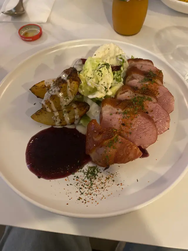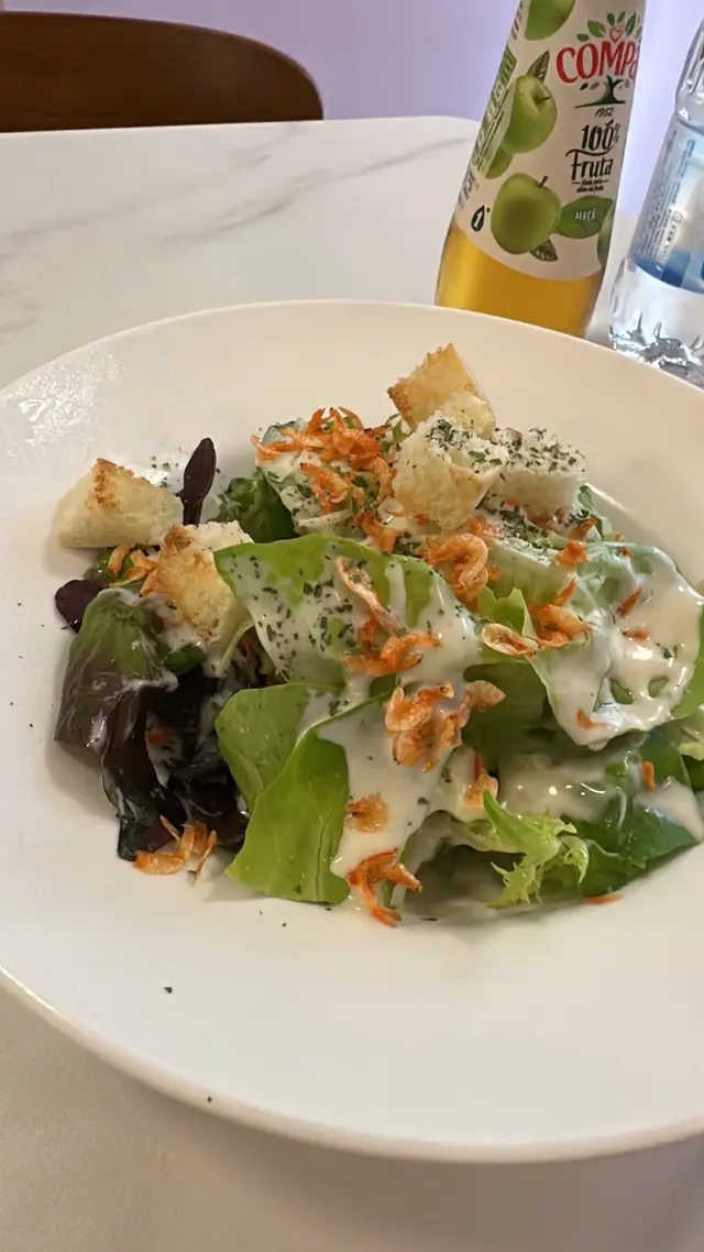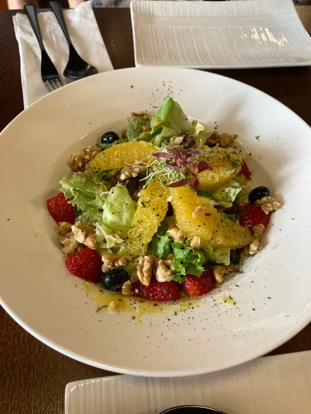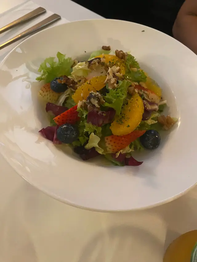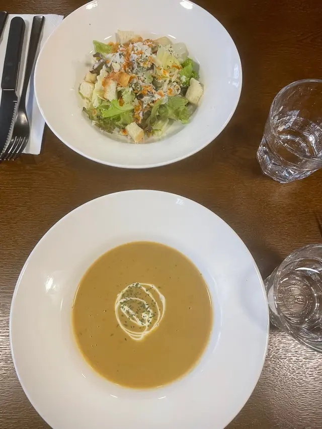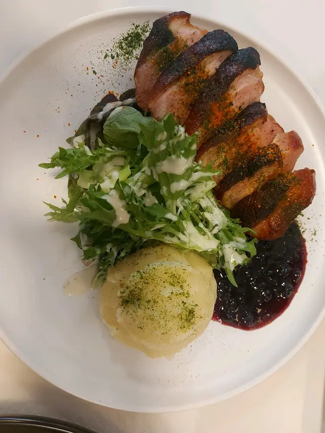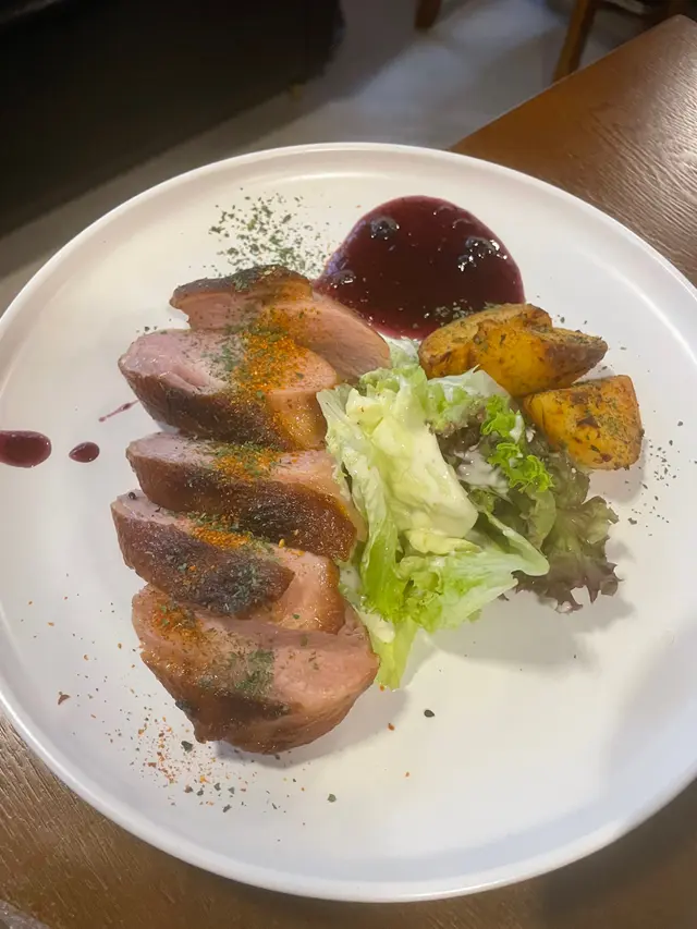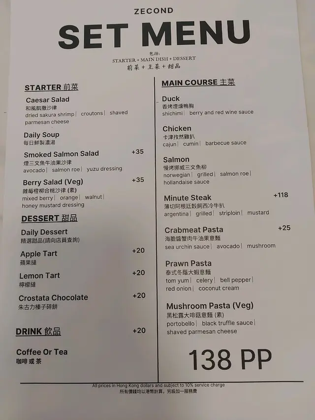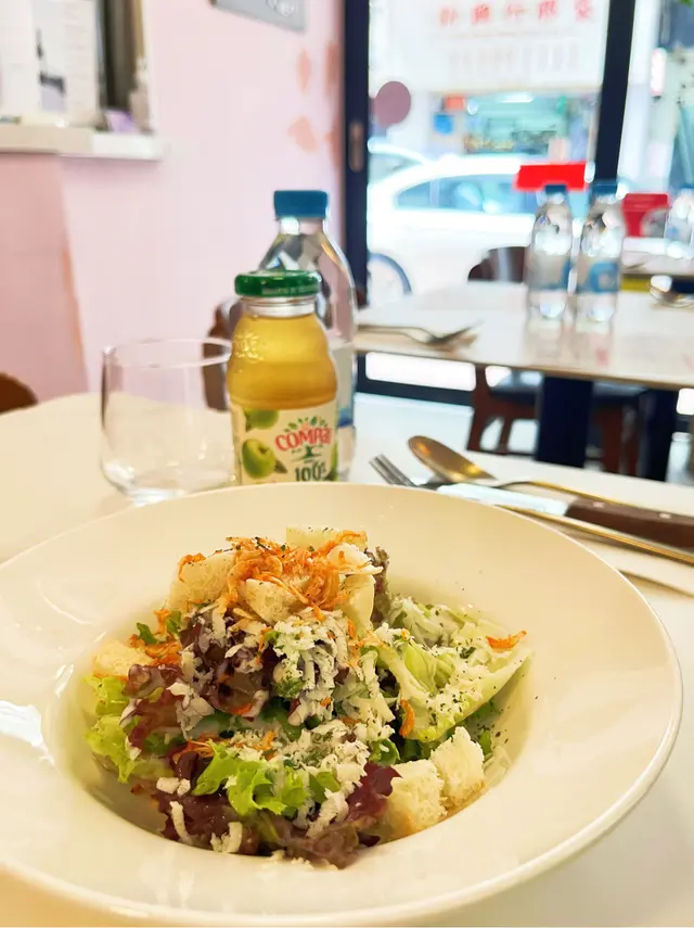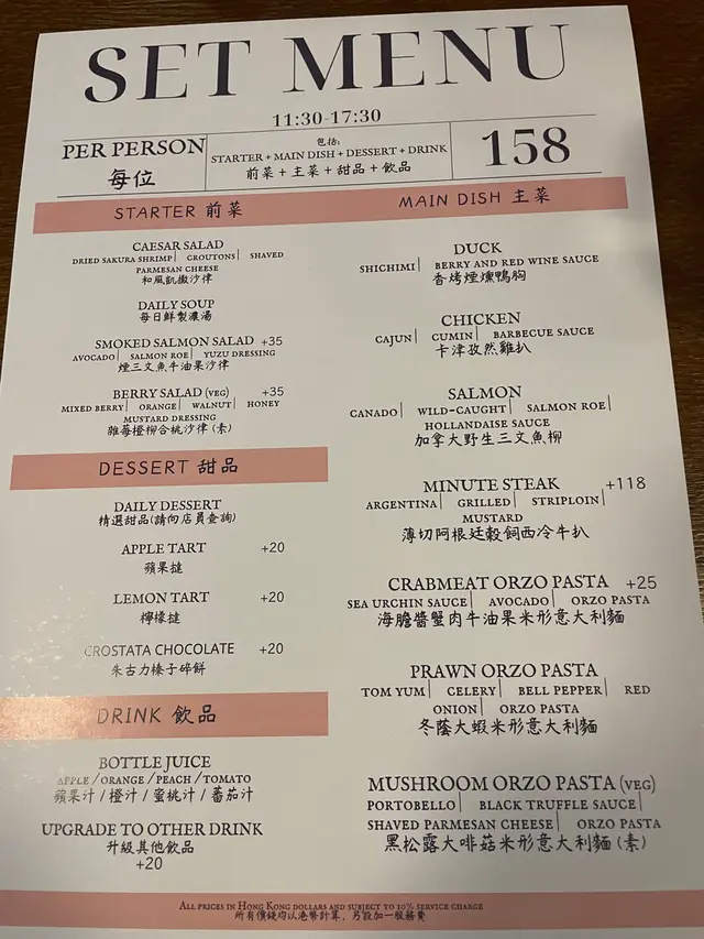 今日要farewell 一位同事,係openrice搵左幾間餐廳揀,最後揀左呢間。lunch有set menu。有前菜,主菜,甜品,3個course. 一個餐$138。前菜我地揀左和風凱撒沙律同湯。沙律有櫻花蝦, 麵包糠都幾脆。湯係牛肝菌湯,幾濃味。兩樣都唔錯。主菜我地揀左卡津孜然雞扒,慢烤三文魚柳,香烤煙燻鴨胸。卡津孜然雞扒🐤孜然比平時辣少少,對我黎講辣左啲啲,但都食到。雞扒都算大塊,比我想像既份量多。配有薯蓉沙律,薯蓉唔係話好滑個種,味道一般,沙律菜都算新鮮。慢烤三文魚柳🐟因為係慢烤,所以啲肉唔會好鞋,配有魚子同沙律醬,魚子脹卜卜,新鮮好食。都係有配薯蓉同沙律菜。香烤煙燻鴨胸🦆份量又係比想像大好大,6塊厚厚的,都唔細塊。呢個肉偏咸少少,但配左藍莓紅酒醬,就balance返個味,都唔錯。個餐仲包左甜品,今日甜品係cheese cake,好好食。西餐黎講呢度既餐份量都幾大,又包甜品,食物味道都幾好,會推介呢間。…查看更多