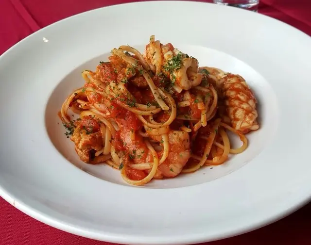 Linguine + Prawn, Wild mushroom & Sausage + Cream sauce
