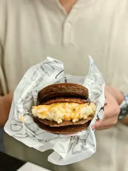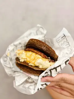 Bookmarked咗呢個pancake漢堡好耐 但之前得外賣就一直冇試到🥲 今次終於俾我食到🤣 夜晚去食已經得返咖啡味既pancake 本身唔太好咖啡但一場黎到唯有要喇😕 豬柳上面加咗少少蜜糖 食落有一鹹一甜既感覺 而炒蛋入面加咗芝士 食落芝味十足同好滑身🧀 加上pancake都幾鬆軟 但咖啡味真係一般般🥵 原味一定好好食!整體黎講都唔錯 呢個價錢仲包咗薯條同飲品 非常抵食😚