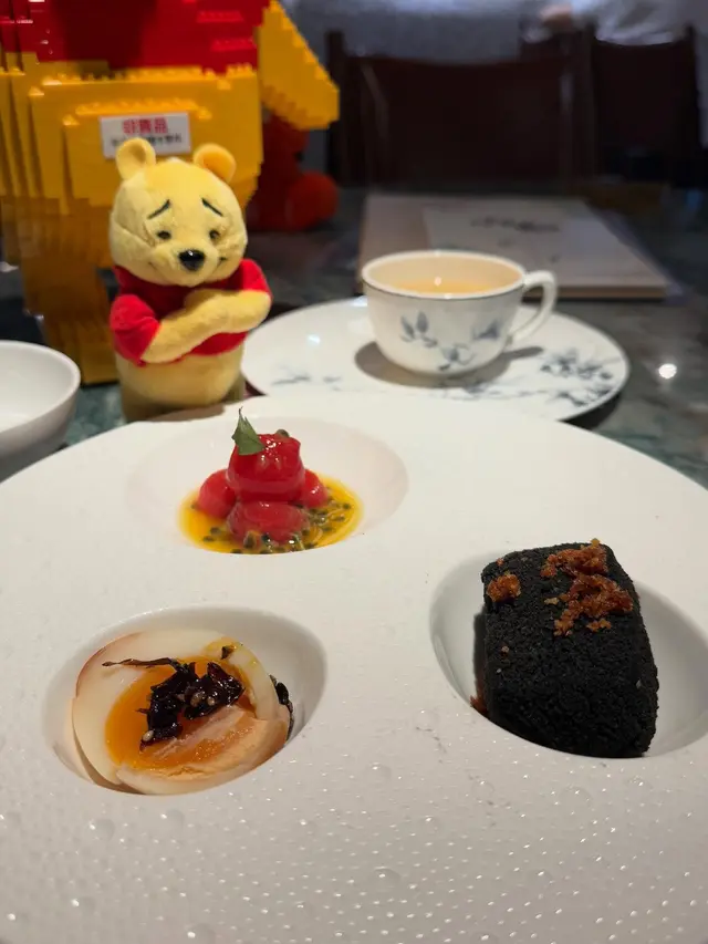 🥚 前菜:煙燻糖心蛋、黑磚豆腐、百香冰心丹霞