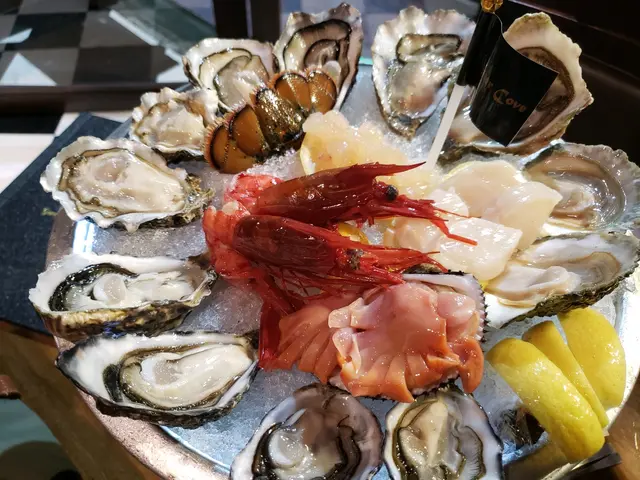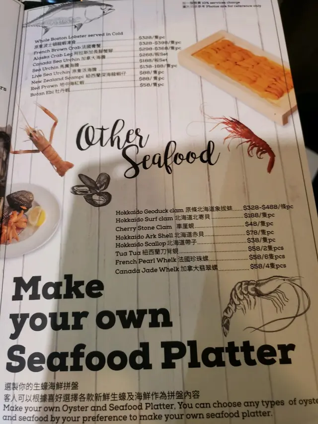 這間蠔灣,位於尖沙咀的一角,絶對有被忽略之嫌,與光老師坐下,已見到有兩臺客人臺上放了一大盤蠔宴,極盡派頭及luxury 感,如到了杜拜帆船酒店吃晚餐般……侍應為我們一一介紹所有蠔來產地及口感分類,最後,我們叫了侍應口中推介的蠔盤。
