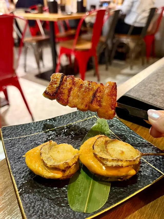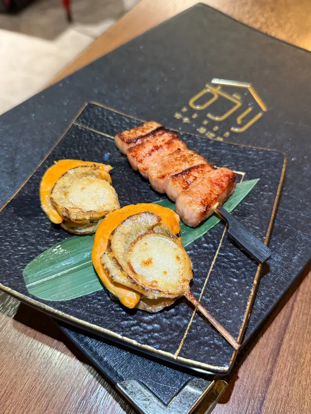 分別嗌咗黑豚豬頸肉串燒同秘製蒜香牛油燒帆立貝😚 豬頸肉肉質鮮嫩,燒得啱啱好,味道濃郁,搭配上特製的醬汁,實在唔可以錯過!而蒜香牛油的味道令帆立貝更加鮮甜,口感滑口,真係令人一口接一口🌊