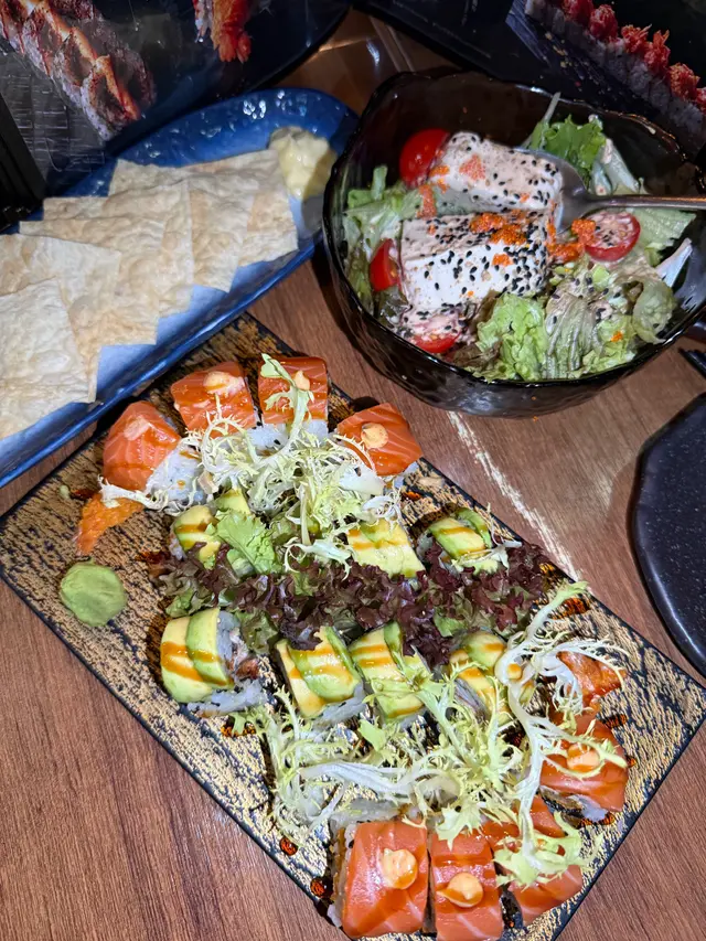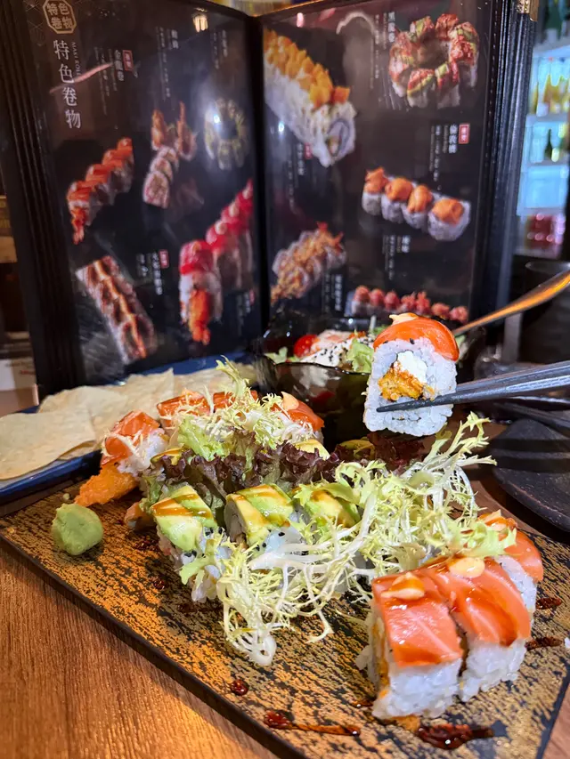 份量十足,金龍卷內裡包咗炸蝦,外面炸得金黃酥脆,上面鋪滿三文魚刺身,口感層次豐富,非常滿足🥰