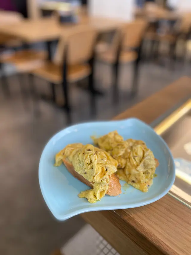 🔺黑松露炒蛋多士,炒蛋用上北海道牛奶同埋大量既牛油,充滿蛋香同埋食落幾鮮嫩, 金黃色既炒蛋略嚴太過多牛油了🧈多士係用法包,如果用番普通厚多士好夾啲,因為法包有點硬喔😳