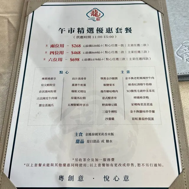 套餐 包兩個點心 三個小菜 四個飯同甜品