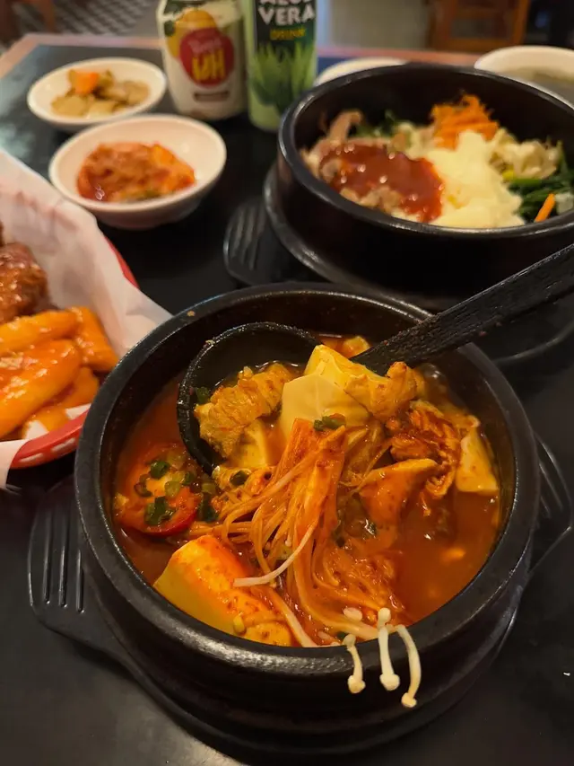 《尖沙咀韓式熱店:漢城美食》 afood_dy等级42025-10-21218 瀏覽 關注 最近喺尖沙咀經過呢間漢城美食,都幾多人,即管試吓,佢哋嘅韓式菜餚種類豐富,每日仲有唔同嘅特價優惠,性價比唔錯!環境都算坐得舒服,味道都唔錯🌶️🥳🍗 香辣雞肉芝士韓式石頭飯石頭飯熱辣辣上枱,雞肉嫩滑入味,芝士拉絲香濃,拌埋辣醬食,層次豐富,辣度啱啱好,食到最後仲有香脆飯焦,超正!🍗 甜辣雞翼雞翼外脆內嫩,甜辣醬汁裹得勻,入口先甜後辣,汁水豐沛,每啖都停唔落口😂🍲 純豆腐豬肉湯豆腐軟滑彈牙,豬肉鮮嫩,湯底辣中帶鮮,暖胃又開胃,配埋小菜食,完美平衡辣味,超舒服!總括而言,漢城美食菜式多樣,特價優惠期間嚟得啱啱好,味道地道,值得推介俾鍾意韓式辣菜嘅朋友!21211以上食評乃用戶個人意見 , 並不代表OpenRice之觀點。讚好分享《尖沙咀韓式熱店:漢城美食》 漢城美食 https://s.openrice.com/QrLT0AkPU00檢舉 張貼 評分5味道4環境5服務4衛生5抵食用餐途徑堂食