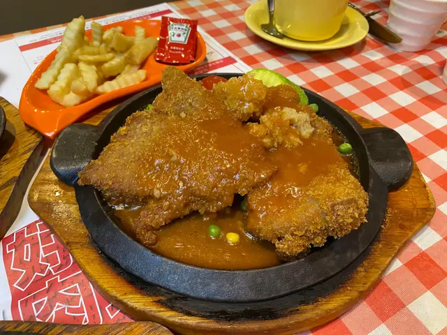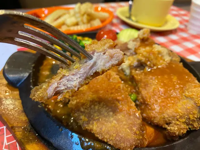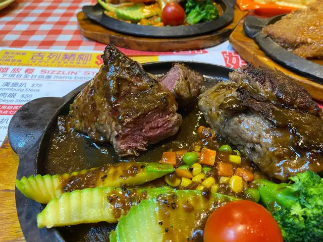 鐵板餐價錢非常親民,最抵食嘅當然係$20嘅吉烈宮崎豬柳鐵板餐,6pm後供應,每天限20份,我哋點咗一份,上檯時完全嚇親,因為份量絕對無將貨就價,足足有兩大塊之多,而且每塊都非常厚切!豬肉仲要用上宮崎豬柳,肉質爽彈有嚼勁,炸漿都好薄,淋上蒜蓉汁後,非常惹味!