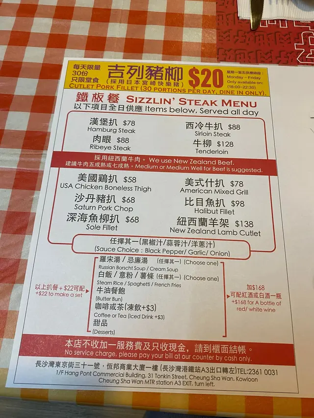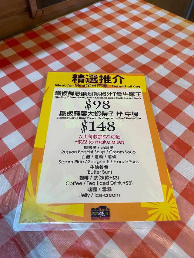 鐵板餐+$22即可有埋餐湯、餐包、飯/意粉/薯條、飲品及甜品。