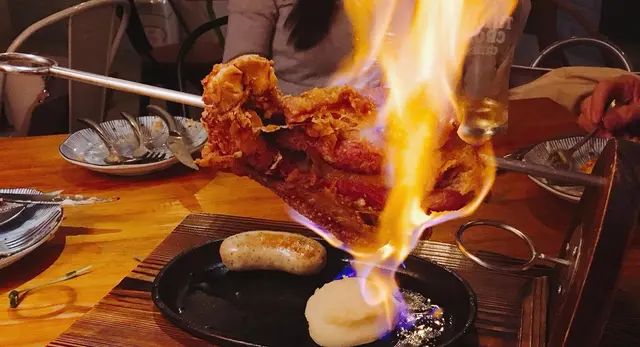 點左個豬手 鐵板配有西式香腸同薯蓉