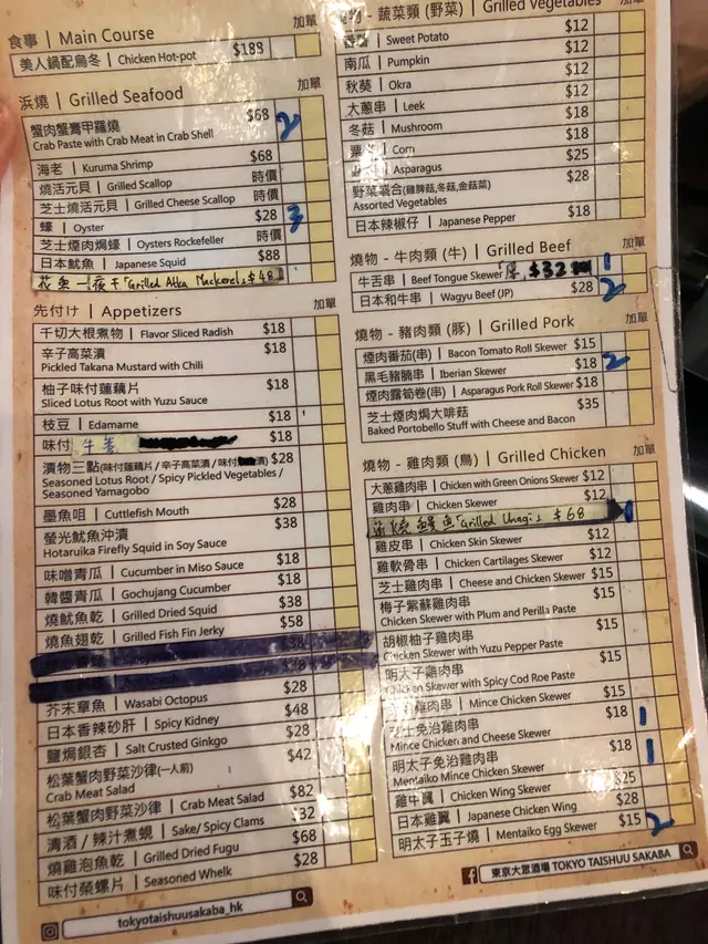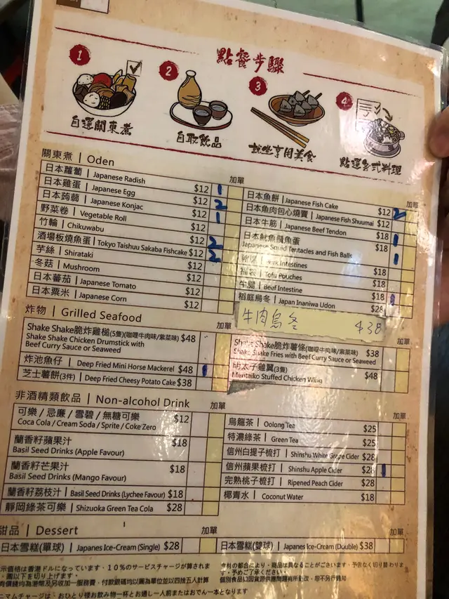 菜單上面有唔少係關東煮、串燒、燒物、炸物等等