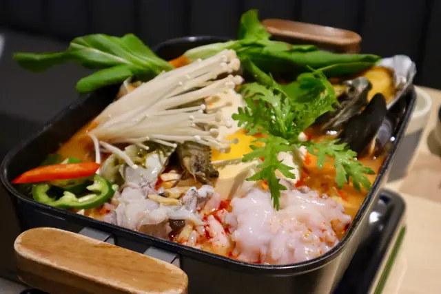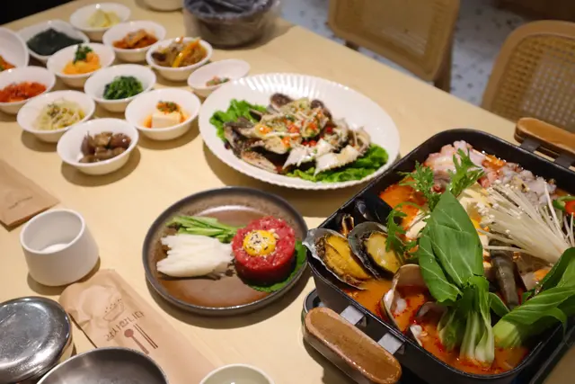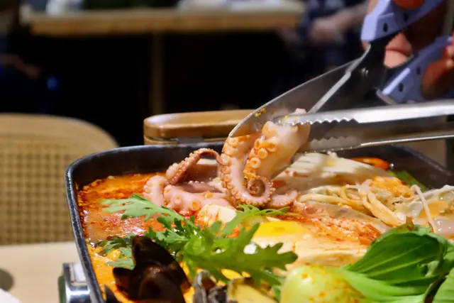 主食嘅海鮮嫩豆腐火鍋雖然要加$230,但睇見其大堆頭嘅海鮮(包括兩隻鮑魚、青口、一隻蟹、一隻八爪魚),頓時覺得唔太貴,店員亦會協助剪開鮑魚及八爪魚,唔喜歡剥殼嘅小朋友幸福感滿滿!湯頭帶輕微香辣,一貫韓式風味,非常鮮甜,八爪魚極其新鮮,爽脆鮮味,巨香!
