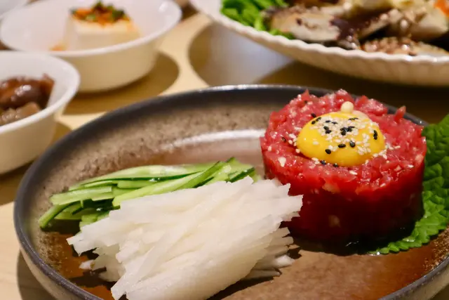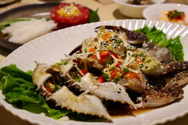 由於份量比較大,仲有兩款主菜及一款主食,選擇食物時我地偏向無咁飽肚嘅選項,主菜分別揀左生拌牛肉、醬油蟹(+$200),而主食揀左海鮮嫩豆腐火鍋(+$230)。