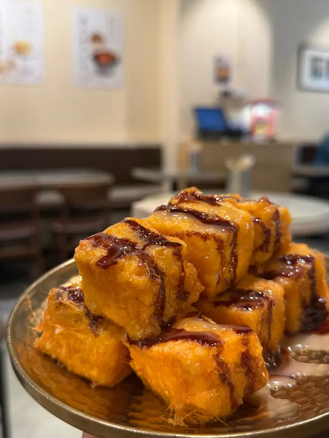 外邊炸得金黃酥脆,一口size,有啲似西多 士🍞 裡面鬆軟,咬落去好有彈性,帶有淡淡嘅甜味~