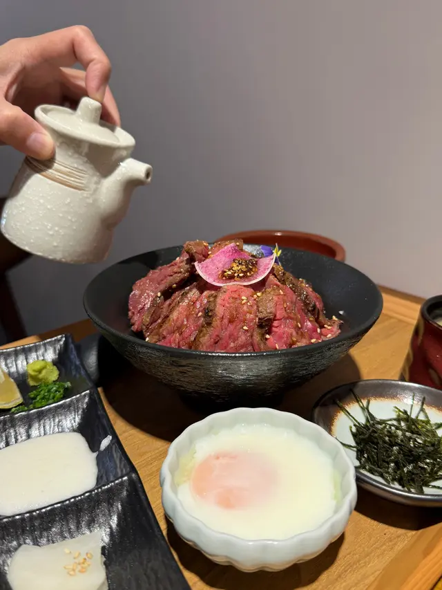 超高質!慢煮黑毛和牛肉質鮮嫩得嚟仲保留咗肉嘅原汁原味,經過低溫慢煮,牛肉吸收咗調味料,充滿肉香😘 一定要加埋隻流心蛋,撈埋食而且佢係有三種食法,除咗就咁食原味,或者加Wasabi之外,仲可以做到茶漬飯,非常清香🍵