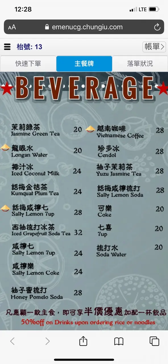 點主食的話,加配飲品只需半價~