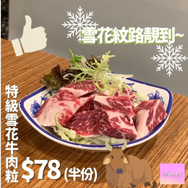 雪花牛肉粒肉質細嫩鮮美🐮,口感極佳,肉眼望上去油脂分布已經超級靚,咬落口真係入口即化,油脂香氣湧出嚟,再配上獨特調味料,絕對令你好食到欲罷不能🫶🏻!