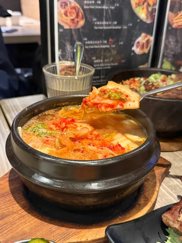泡菜湯底辣得嚟又開胃,泡菜味道同豬肉夾得啱啱好,豬肉切得厚薄適中,豆腐則吸滿咗湯汁,食落去柔軟滑嫩👍🏻