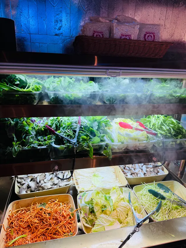 自助區的配料也很貼心,蔬菜新鮮,蔬菜總類都多選擇。各式麵食吸飽湯汁超入味,還有多種醬料能自由搭配,已經足夠滿足需求了。