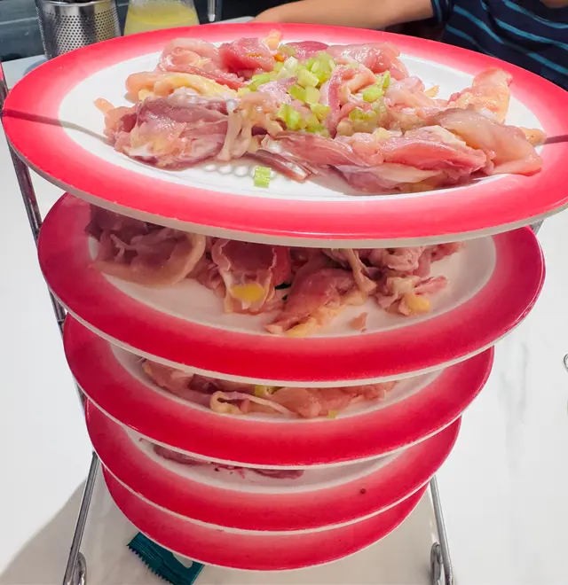 雖說套餐里的肉類選擇不算豐富,只有精選靚肥牛、黑豚肉片、爽五花豚肉。但 “120 分鐘任食”,盡可以把食材慢慢放進鍋里煮透。