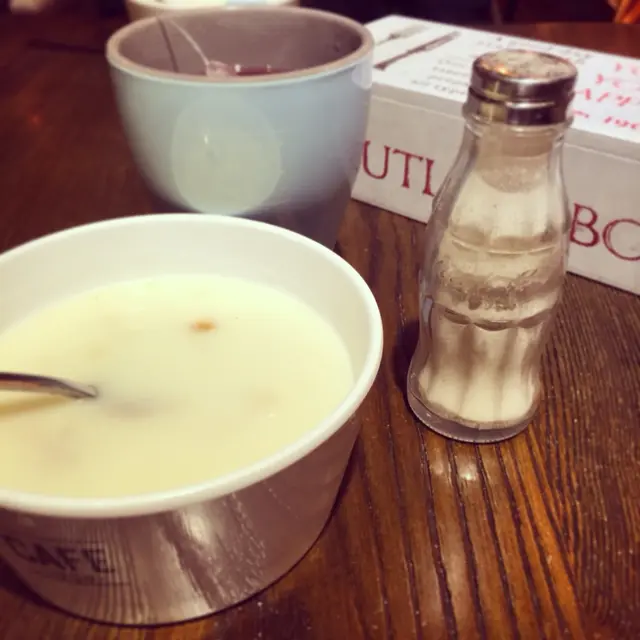 首先,餐湯係周打蜆湯,不過不失啦,但見到餐具全部印左餐廳名,有心思,最愛可樂胡椒粉樽,好Cute!