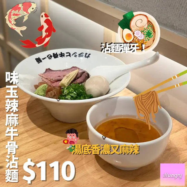 呢啲辣麻牛骨拉麵,先講辣先🌶️!辣麻唔係咁直接辣,而係一種麻麻底辣味先會漸漸浮現,而牛骨煲到香噴噴,湯底香醇厚實🐂。