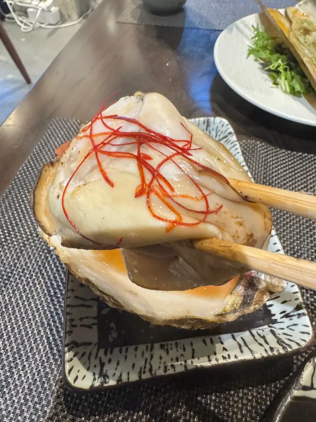 一上枱就霸氣外露!蠔殼大過手掌,蠔肉燒完都0縮水,肥美到瀉出嚟,浸住清酒昆布汁,入口先係淡雅酒香,跟住係蠔肉嘅爆炸鮮甜,尾韻帶微微昆布鹹香,高級過癮!