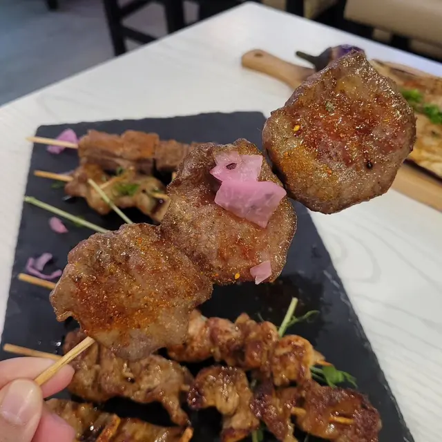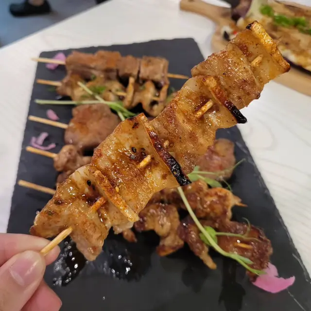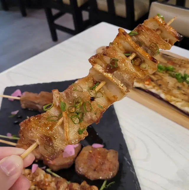 鹽燒熊本和牛串專業精準地掌控火候,熊本和牛滿滿的肉汁封存,牛肉好不鮮嫩,鹽燒熊本和牛串沒有再額外刷醬,靠的就是好食材原味的直接對決,鹽燒熊本和牛串等級選得不錯,充分感受甜鮮油花香氣,完全不用其他調味,簡單鹽燒已很讚。