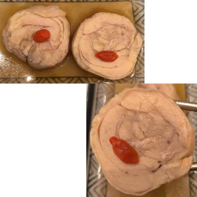 下午茶揀咗慢烤雞腿蛋吐司,吐司外面有烘過,少少脆脆地,入面烤雞腿肉肉質超嫩滑,仲有一大塊熟蛋,加咗$12揀咗杯黑糖珍珠奶茶,珍珠煙韌無硬心,甜度無其他分店咁甜,再追加一款地道小食係古早花雕雞卷,一共有2件,每1件雞卷嘅花雕酒味都好入味,每次嚟到都會必叫!
