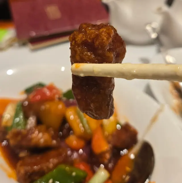 力寶軒的山楂草莓咕嚕肉絕對是朋友心中最好吃的咕嚕肉,咕嚕醬是大廚親自調製,非一般市面上賣的醬料,咕嚕肉的炸粉充份與咕嚕汁結合,在燈光下閃閃動人,一口咬下咕嚕肉,酥脆又保有肉汁,肉嫩噴香,連配料都味美到不行。