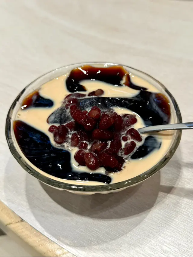 甜品叫咗十勝紅豆燒仙草,紅豆甜甜糯糯,花奶味道唔會太甜膩。