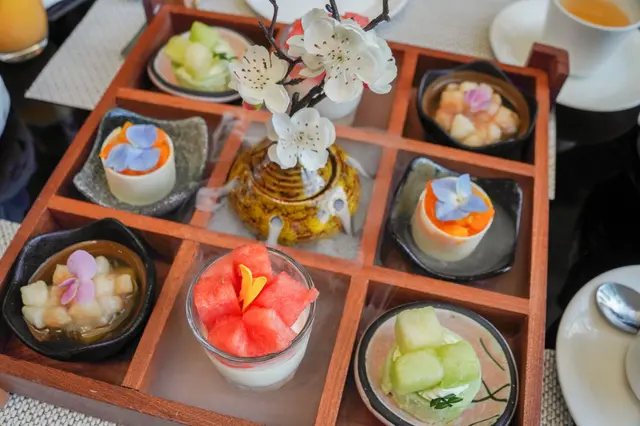 甜點部分同樣以日式九宮格盛載,飄逸的仙氣彷彿置身日式庭園。