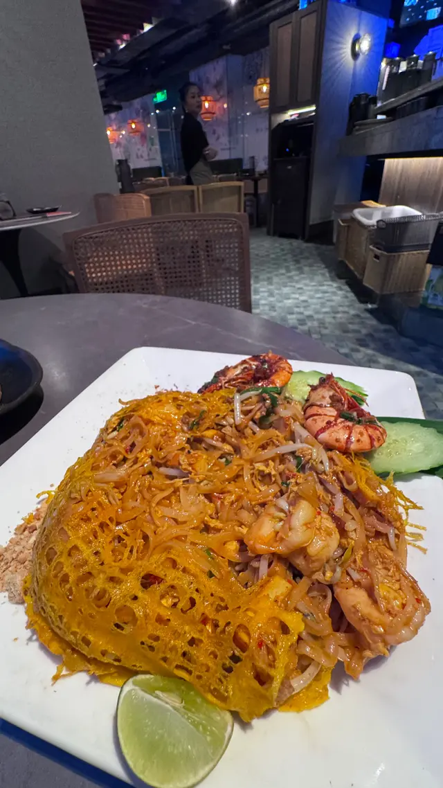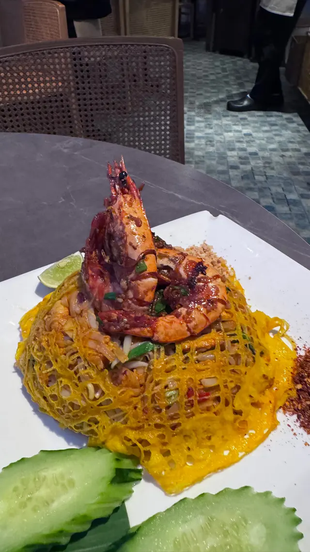 $138「泰式蝦炒金邊粉」:有兩隻連殼嘅中蝦🦐同埋幾隻冇殼嘅大蝦仁🍤,金邊粉少少煙靭,炒得香口幾好味🤣