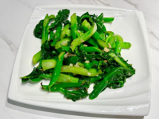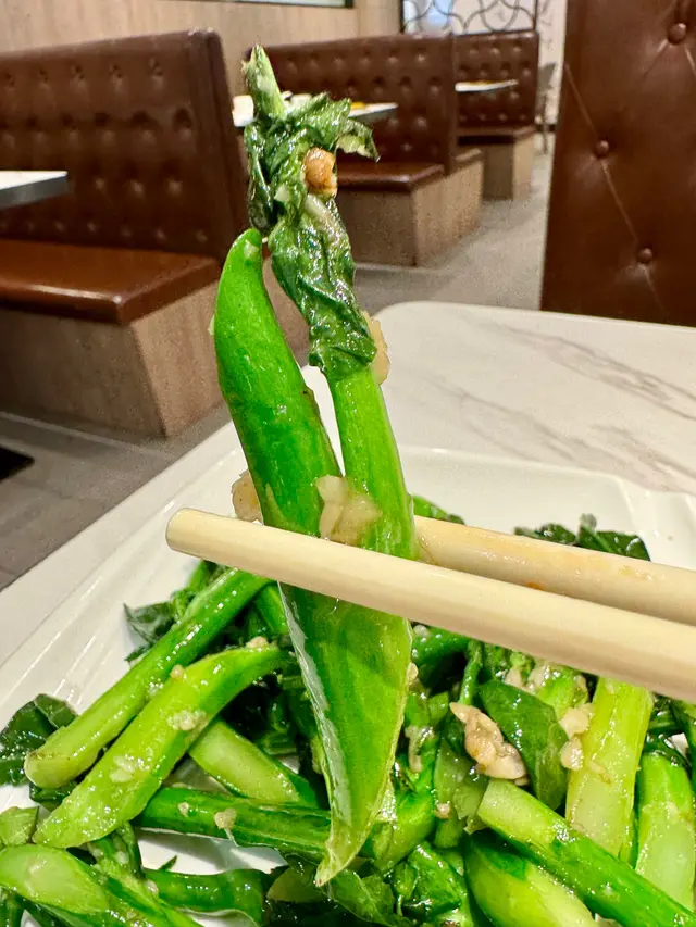 「薑汁蒜蓉炒芥蘭」:芥蘭菜新鮮爽脆,加埋薑汁同埋蒜蓉一齊炒,簡單又好食😁