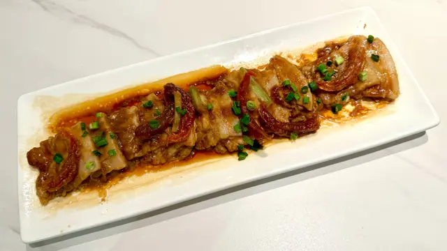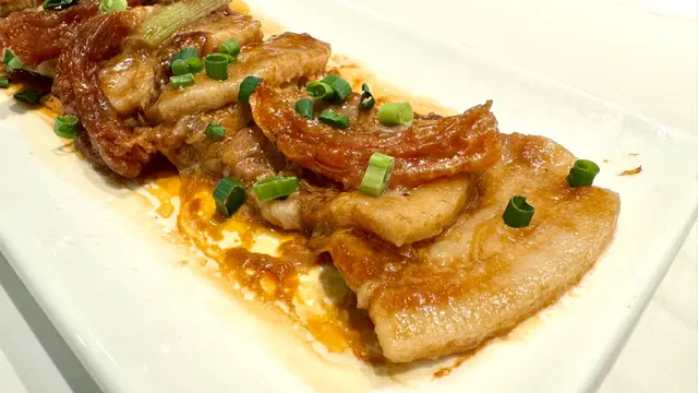 「蝦乾蝦醬蒸腩片」:豬腩片7成瘦肉3成脂肪,加埋蝦醬蝦乾一齊蒸,甘香得嚟又有鹹香😁