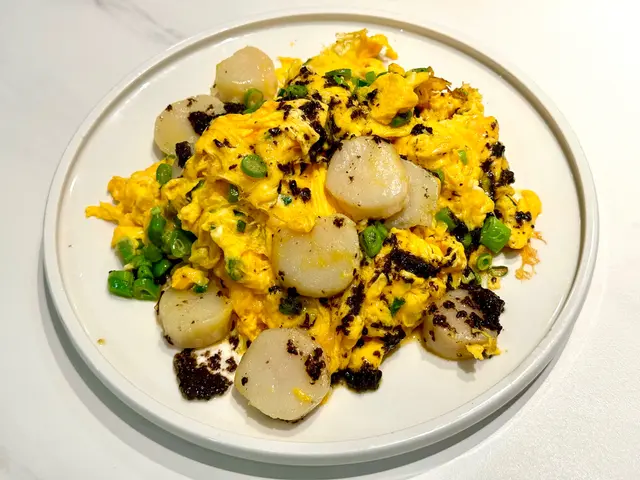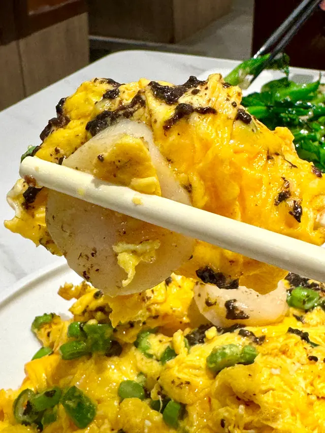 「黑松露帶子炒滑蛋」:帶子新鮮爽滑😋,雞蛋亦都炒得好滑😋,又加咗啲切成小粒嘅四季豆喺雞蛋裏邊一齊炒,增加口感層次😋,仲加咗唔少黑松露醬,有淡淡的黑松露香味😋
